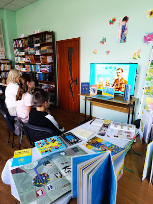 прапора в бібліотеці для дітей влаштовано перегляд освітнього відео: "Два